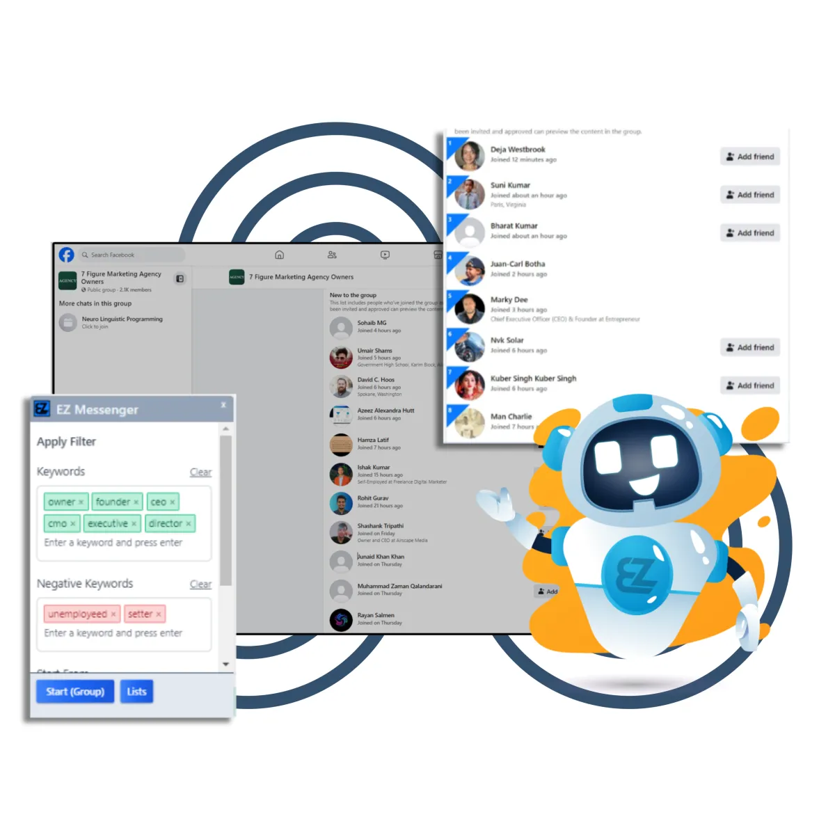 Although EZ Messenger can scan thousands of high-quality leads at once, we recommend that you don't send out more than 15 friend requests per day.